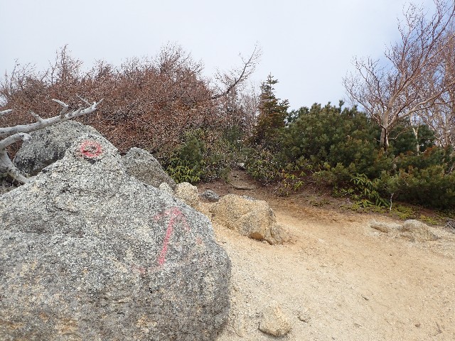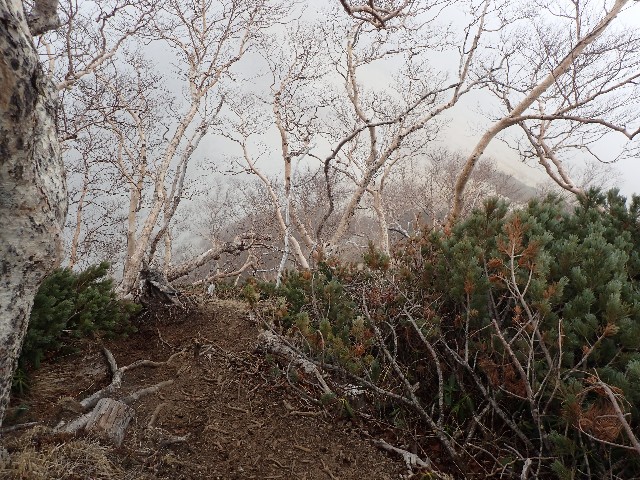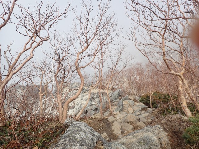 残雪下ったあたりから、肺活量が限界!?なんかすぐに息があがる。残雪下って登ると、アカヌケ沢の頭です。