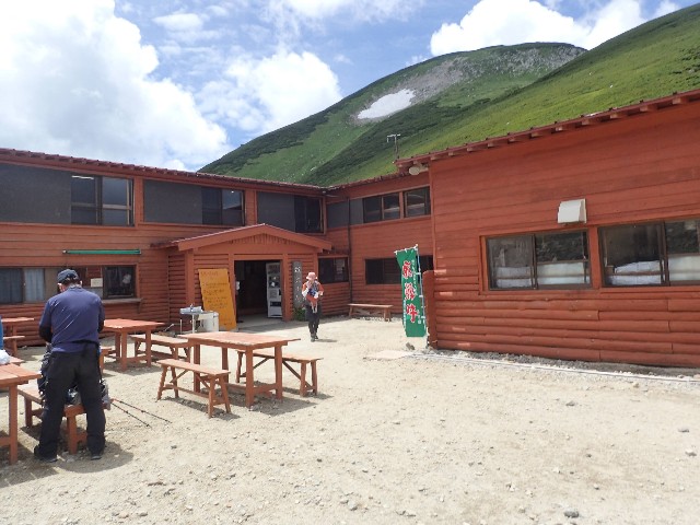 鏡池から5分ほど歩くと、鏡平山荘です🙌かき氷🍧食べれるそうです💕素晴らしい!!!少しだけ休憩して、最後の登りに備えて、行動食でエネルギーチャージ。
